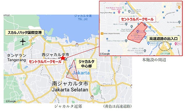 本施設は、東南アジア有数の経済発展が続くジャカルタ都市圏の西部に位置しており、スカルノハッタ国際空港とジャカルタ中心部を結ぶ高速道路の出入口至近という好立地にあります。また、本施設は、特色の一つである大規模な中庭のほか、映画館や大学等を備えており、幅広いお客様を広域から集めることができています。さらに、本施設のある大規模複合開発エリア『ポドモロシティ』(後述)内の居住者やオフィスワーカー、ホテルの宿泊客等のご利用も多く、西ジャカルタエリアを代表する大規模商業施設として評価されています。