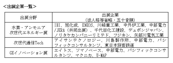 「水素・アンモニア」、「次世代通信」、「GX」の3分野で先端的な取組を実施する企業の製品・技術を展示し、「AXIA EXPO 2024」(2024年6月開催予定)に向けた気運醸成を図る。