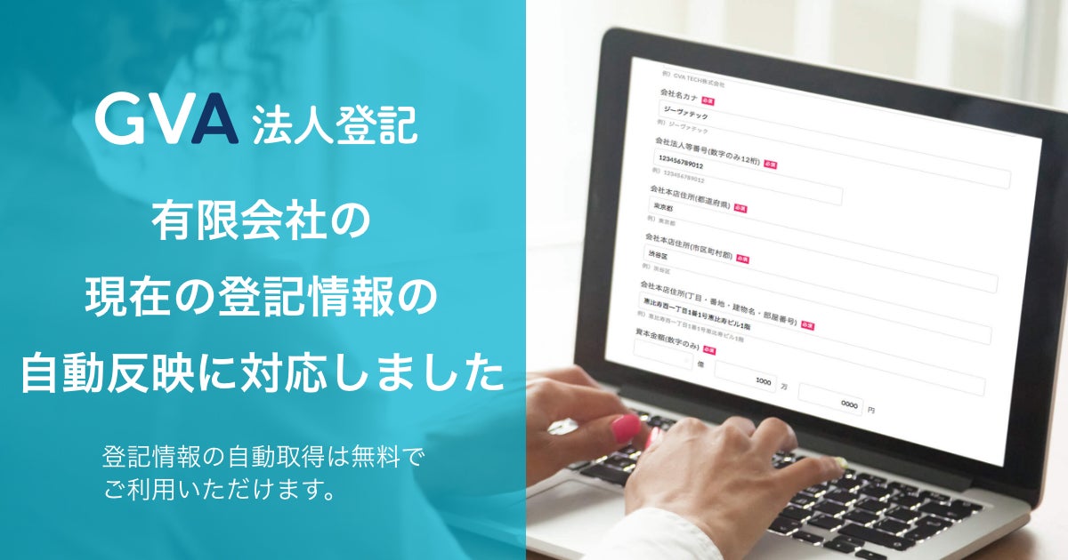 リーガルテックサービスの開発・運営を行うGVA TECH株式会社(本社:東京都渋谷区、代表取締役:山本 俊)が運営するオンライン商業登記支援サービス「GVA 法人登記」にて、有限会社の登記申請書類作成における、現在の登記情報の自動反映に対応したことをお知らせいたします。