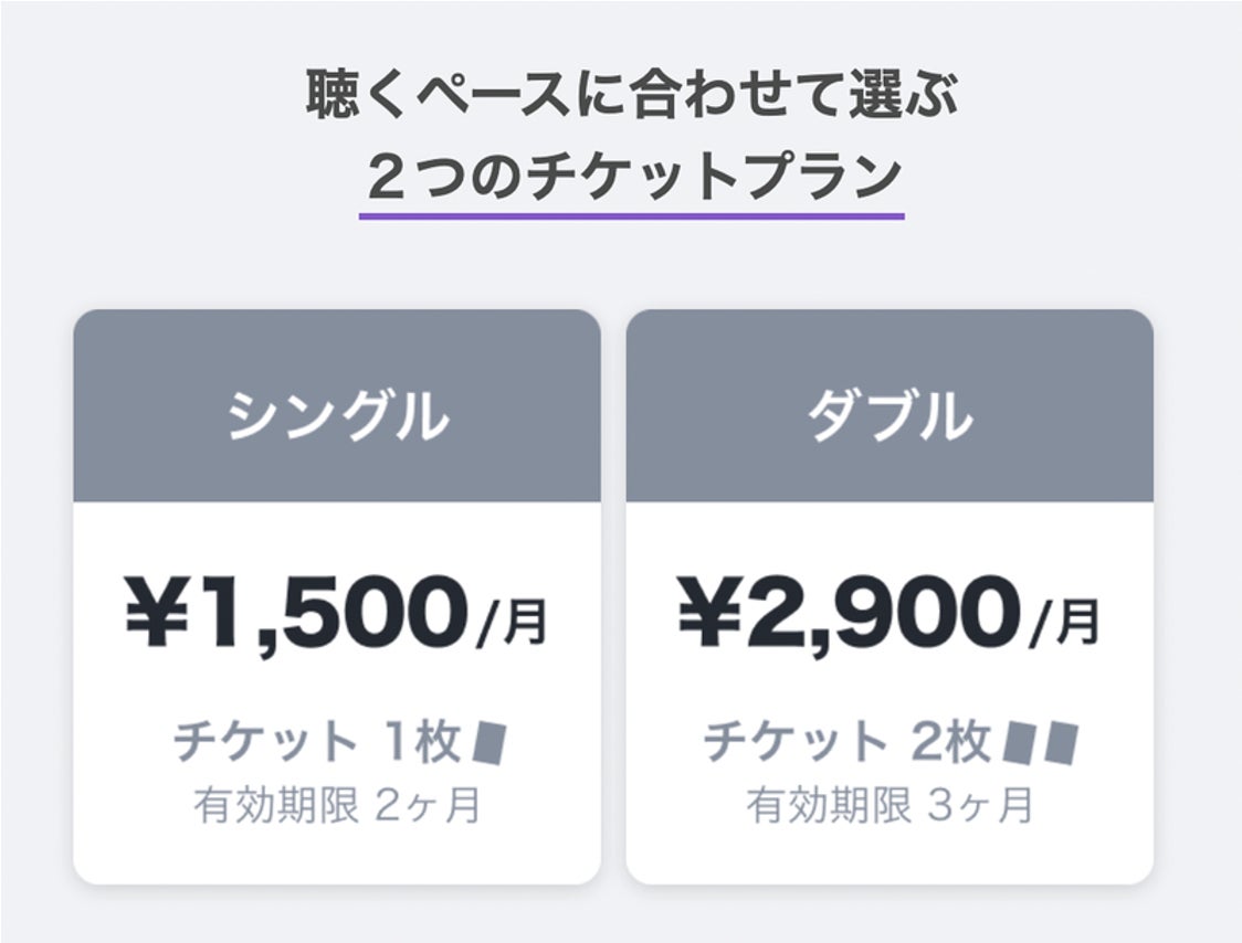 ・聴き放題プランと、チケットプランの2つのプランで展開