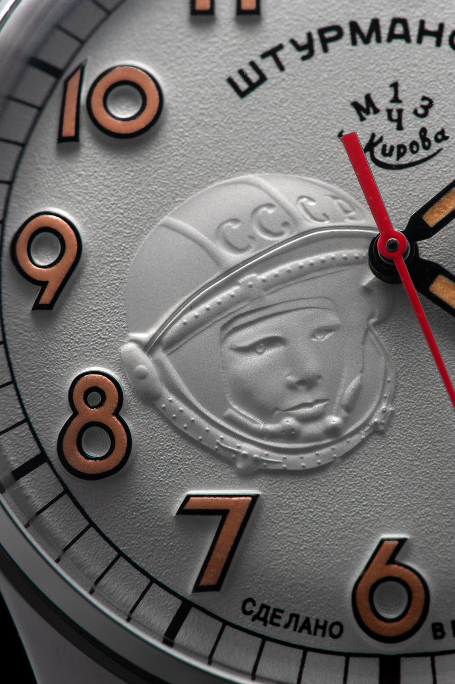 ⼈気のGagarin アニバーサリーモデル! ⽂字盤にはエンボス加⼯を施しており、モデルなっているユーリイ・ガガーリンとインデックスが⽴体的になっています。
