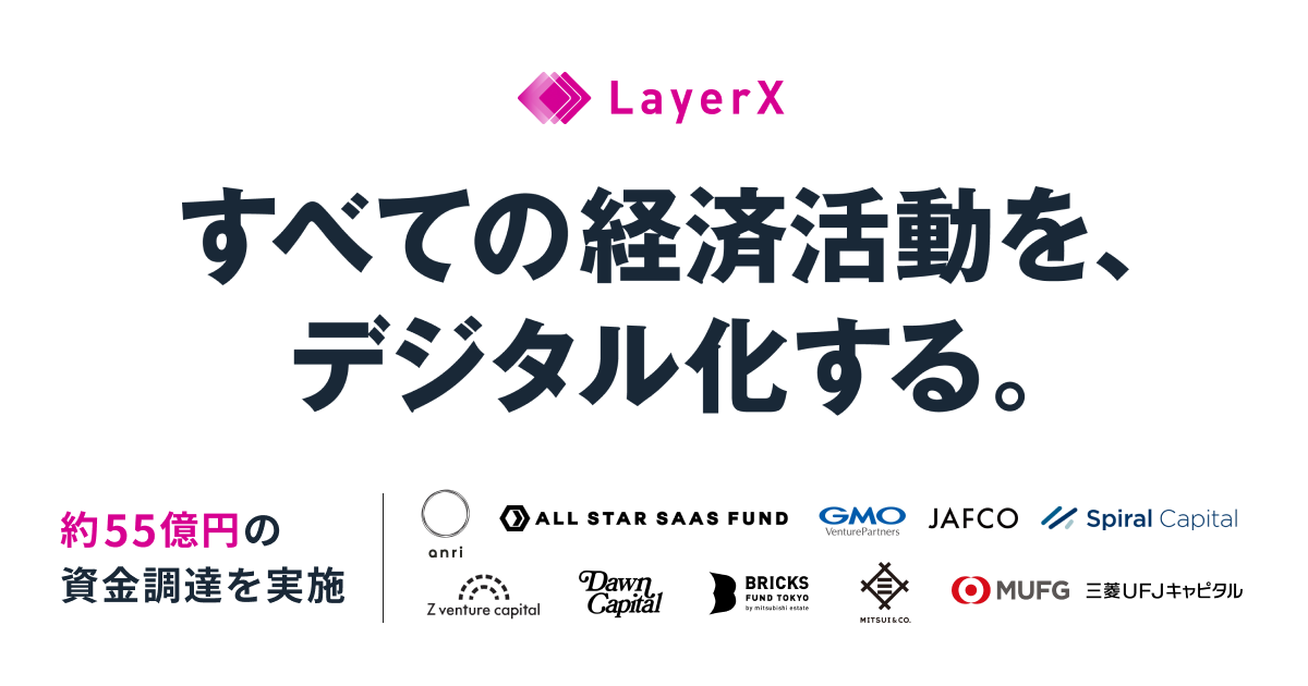 LayerXは「すべての経済活動を、デジタル化する。」をミッションに掲げるSaaS+Fintechスタートアップです。支出管理サービス「バクラク」を中心に、デジタルネイティブなアセットマネジメント会社を目指す合弁会社「三井物産デジタル・アセットマネジメント」、プライバシー保護技術「Anonify」で組織横断のデータ利活用を目指すPrivacyTech事業などを開発・運営しています。2020年にはシード期として約30億円の資金調達を実施。今回の資金調達はシリーズA(ファーストクローズ)になります。