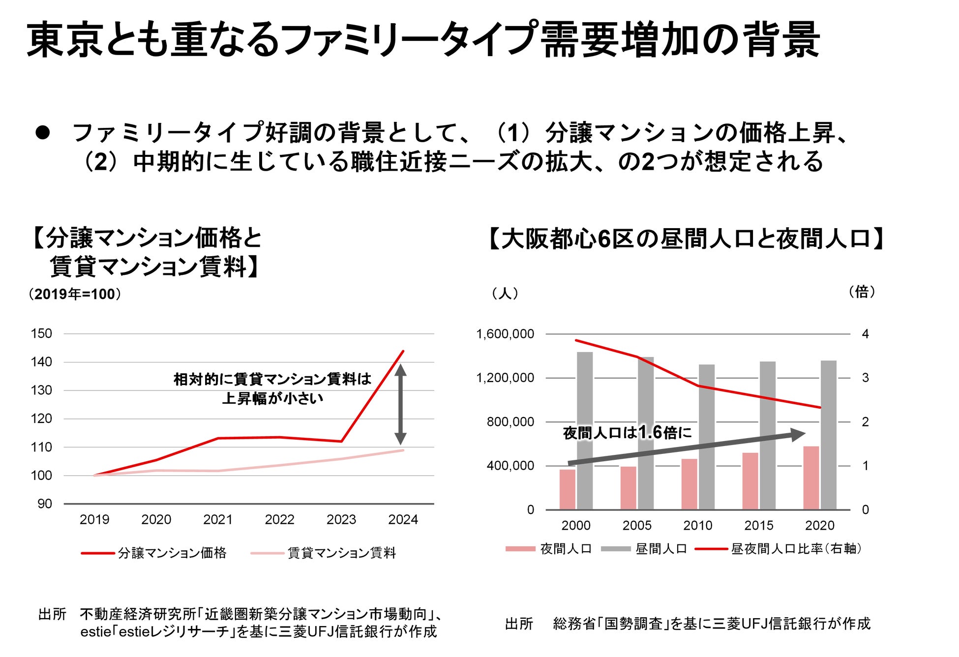 三菱UFJ信託銀行株式会社(東京都千代田区、取締役社長:長島 巌)は、この度不動産マーケットリサーチレポートVol.267「大阪都心の賃貸マンション~高まるファミリータイプへの需要~」を発行しました。