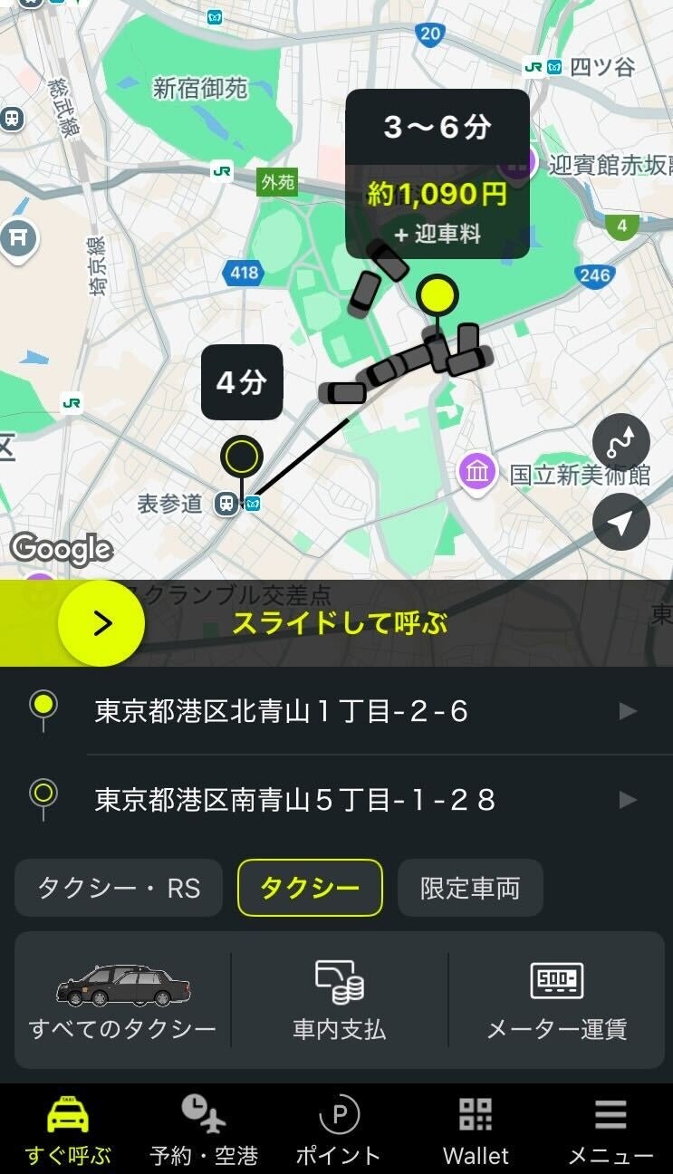 4 選択画面に表示された経路で「タクシーを呼ぶ」を選択