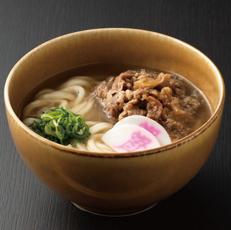 店舗で人気の「肉うどん」は、甘辛の味付けが染み込んだ牛肉、モチモチの食感が特長のうどん、手間を惜しまず、鯖や昆布、椎茸等からていねいに取った出汁(資さんのうどんつゆ)の調和がベストマッチした逸品です!また、肉そばセットの「そば」は二八そばで、風味と豊かな味わいです。