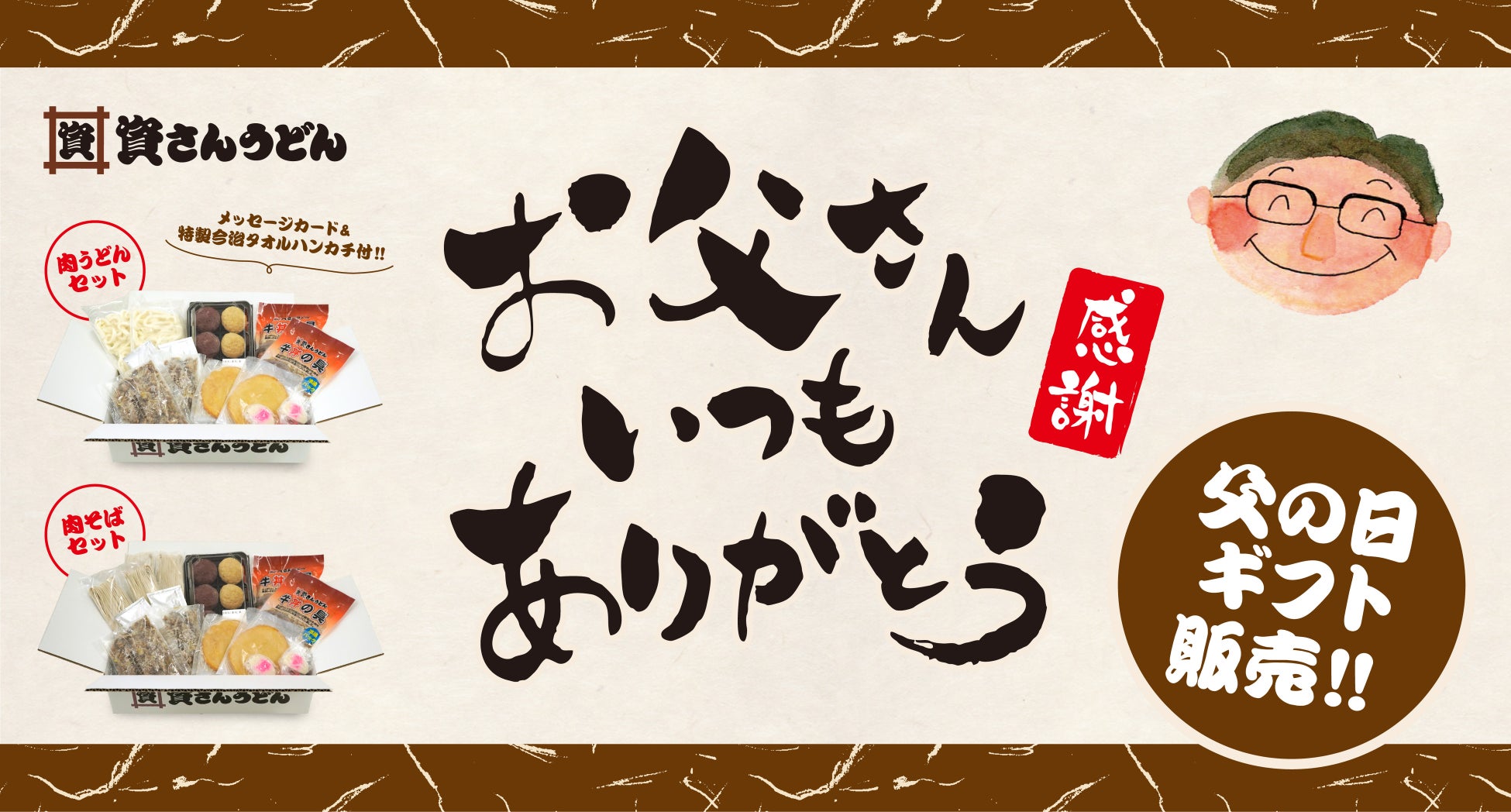 北九州のソウルフード「資さんうどん」は、ご好評頂いている自社通販サイト「資さんストア」にて、6月16日(日)「父の日」に向けた「父の日ギフト」をご用意しました!5月17日(金)11時~受付開始!!