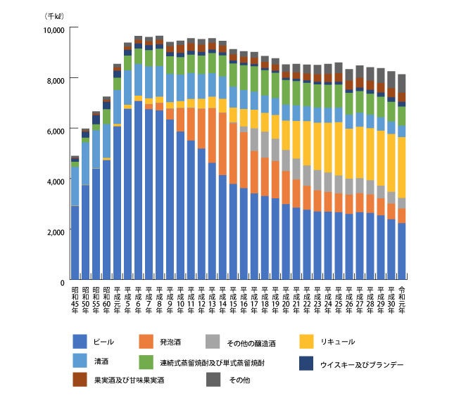 同時に現在、「若者のアルコール離れ」という言葉もあります。実際に日本の飲酒習慣率は低下傾向にあるようで、厚生労働省による飲酒習慣率調査を見ると、週に3回以上飲酒する習慣飲酒者は、男性では1989年に51.5%だったのに対し、2019年では33.9%まで下がっています。男性の飲酒習慣は全年代で低下しており、特に20代は男女ともに飲酒習慣が低下傾向にあります。若い世代ほど飲酒習慣がなくなっており、アルコール離れしているそうです。
