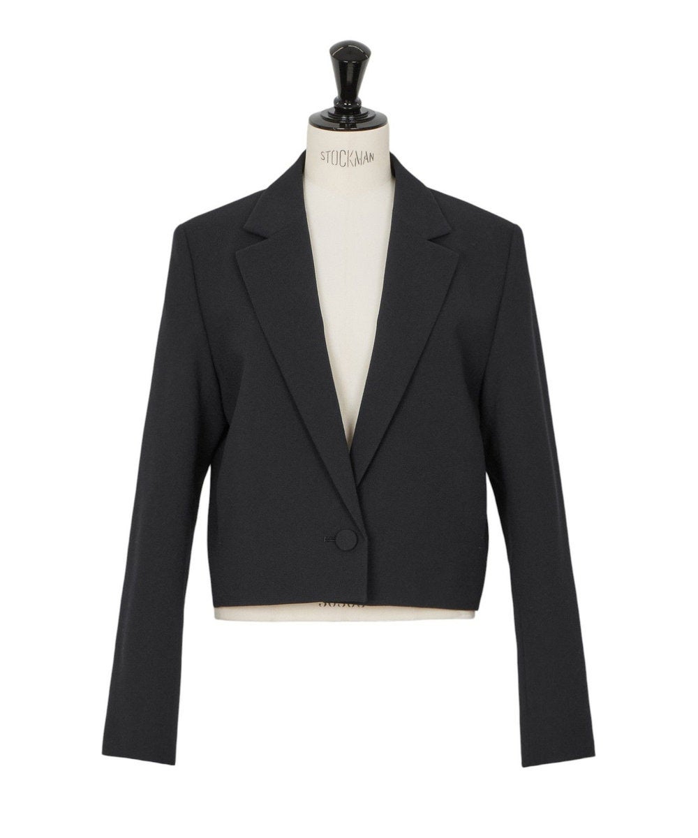 愛知県、尾州産地のテキスタイルメーカーで織り上げたウールジョーゼット素材に、含浸加工で張り感を出した別注素材を使用した、クロップド丈のジャケットは、肩をきちんと構築することでシャープさを引き出し、コンパクトながら存在感のあるボックスシルエットに仕上げています。