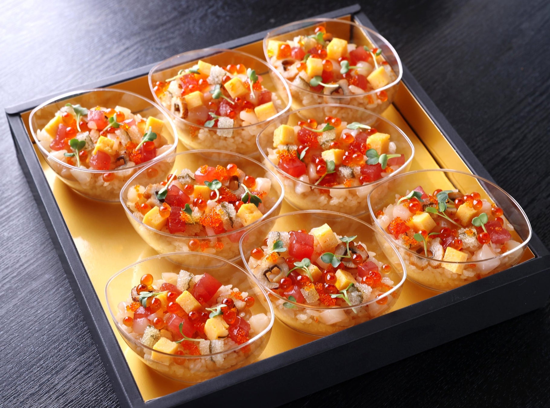 大切なお集まりのシーンを華やかに彩る逸品を、にぎり寿司などと一緒にお楽しみください。