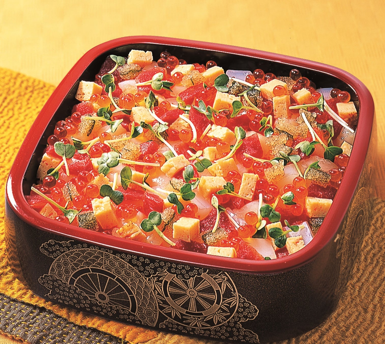 内容:子持ち昆布・まぐろ赤身・いくら・ほたて・玉子・刻み穴子・いか・とびっこ・かいわれ