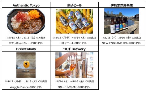 出店店舗:下表のとおり *代表メニューを記載。それぞれ画像はイメージです。