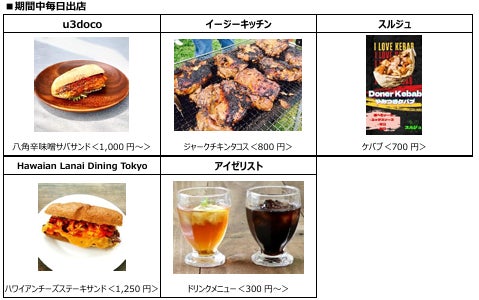 ※出店店舗及び店舗数は開催日により異なります。また、予告なく変更、中止させていただく場合がございます。