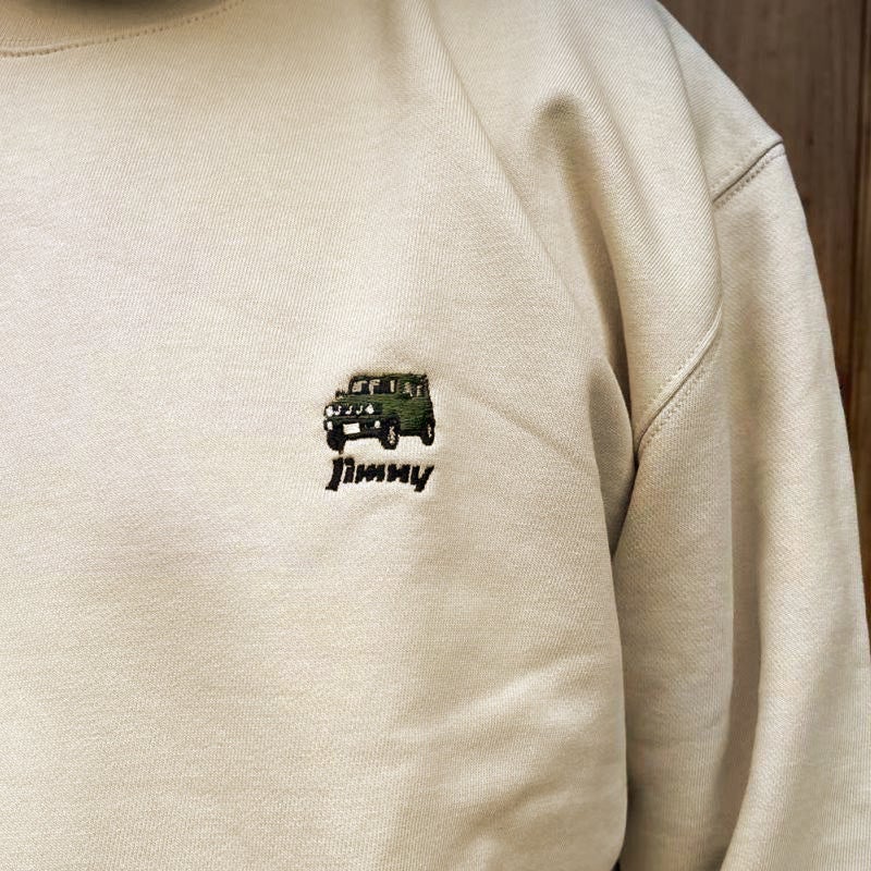 スズキの中でも人気の「ジムニー」のスウェットが発売。胸元に施された刺繍のジムニーはシンプルながらも目を惹くファッションのワンポイントとなっています。