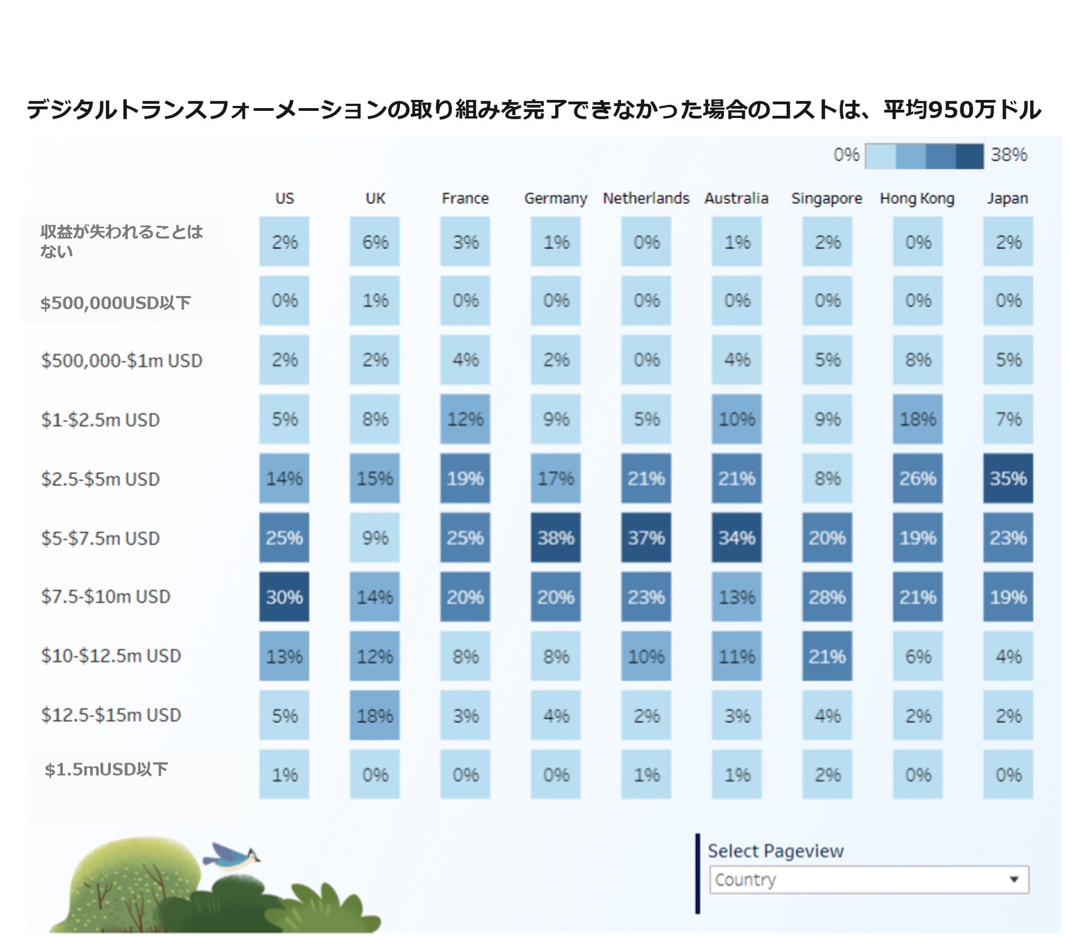 DX イニシアティブに失敗したときのコストは大幅に増加しています。失敗したときの損失額は、950 万ドル(約 13 億円)にものぼると予想されており、昨年の予想金額 680 万ドル(約 9 億円)から大幅に増加しました。