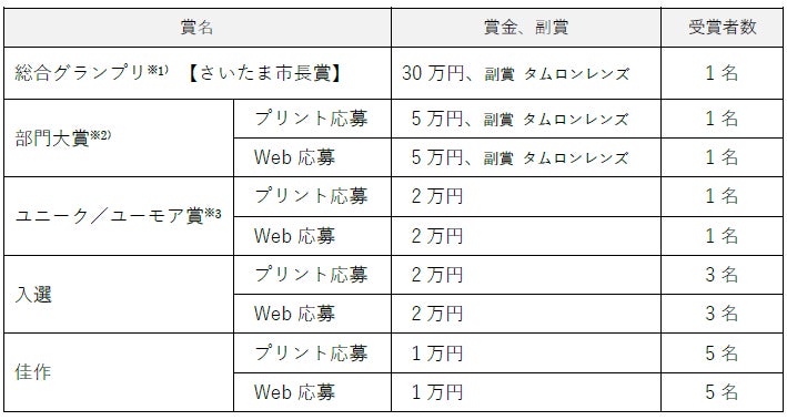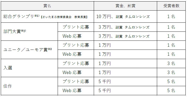 ※1)総合グランプリ 「一般の部」と「U-18の部」、各部ごとの最優秀作品に対する賞