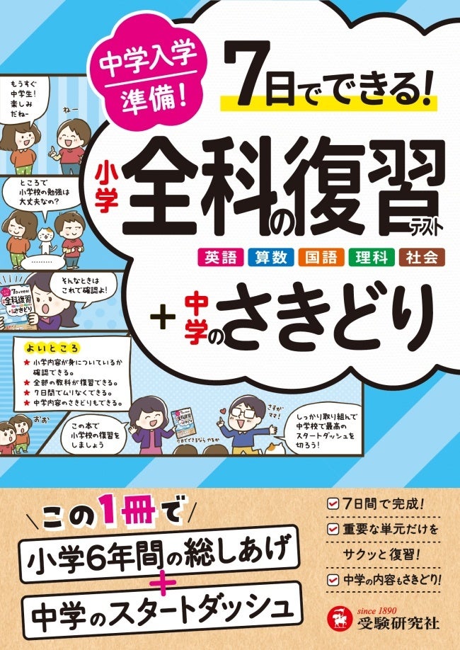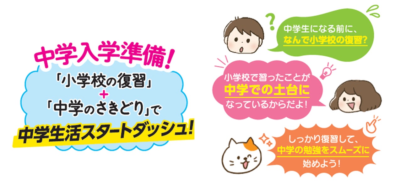 <新中1向け>春休みわずか7日間で中学スタートダッシュの準備完了!『中学入学準備 小学全科の復習テスト +中学のさきどり』が新登場!