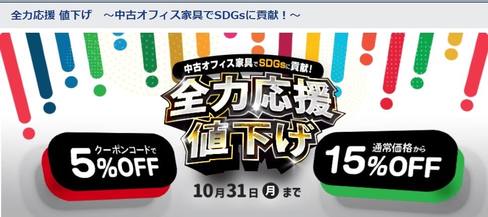【内容】 当社取り扱いのオフィス家具・機器の対象商品のご購入されるお客様を対象に値下げ販売