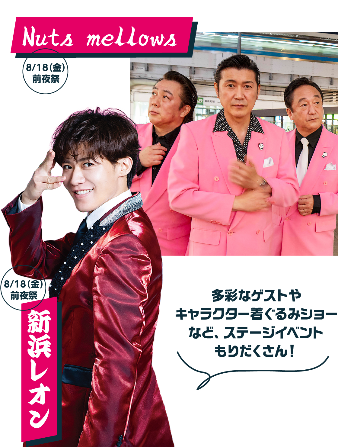 話題の人気シンガー新浜レオンさんと昭和の香り漂うNuts mellowsがステージを彩る“大人の前夜祭”