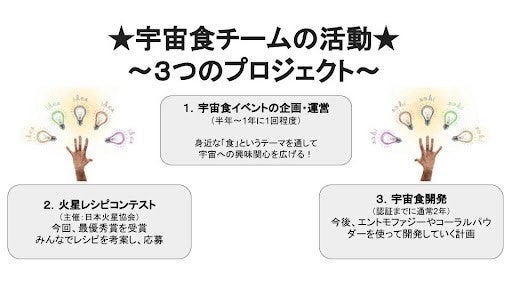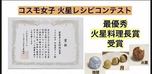 コスモ女子は、宇宙食チームが日本火星協会が開催する「火星レシピコンテスト」に参加し、”最優秀火星料理長賞”を受賞しました。