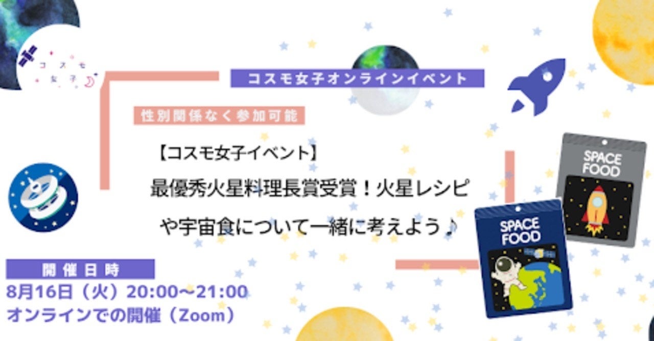 株式会社Kanatta(東京都目黒区、代表取締役社長:井口恵)が運営する「コスモ女子」は、8月16日(火)に火星料理長賞を受賞したコスモ女子メンバーが登壇し、宇宙食について考えるオンラインイベントを開催しました。