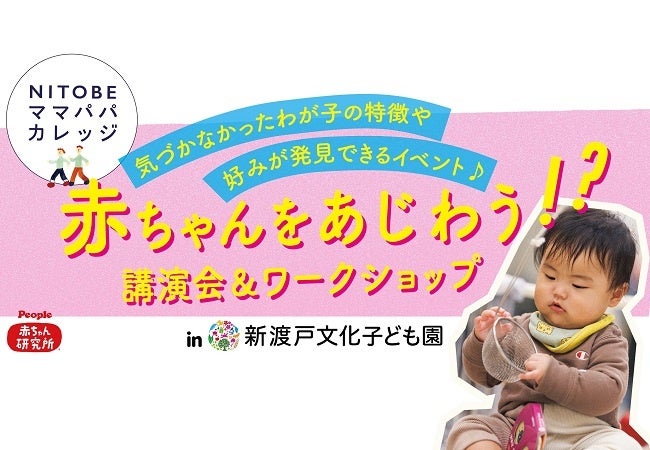 赤ちゃんの観察を通じておもちゃをつくるおもちゃメーカー、ピープル株式会社(本社:東京都中央区、取締役兼代表執行役:桐渕真人)の「ピープル赤ちゃん研究所」は、新渡戸文化子ども園(東京都中野区 理事長:平岩国泰)主催のNITOBEママパパカレッジ(後援:中野区・杉並区・新宿区)において、赤ちゃんをあじわう!?講演会&ワークショップを開催します。