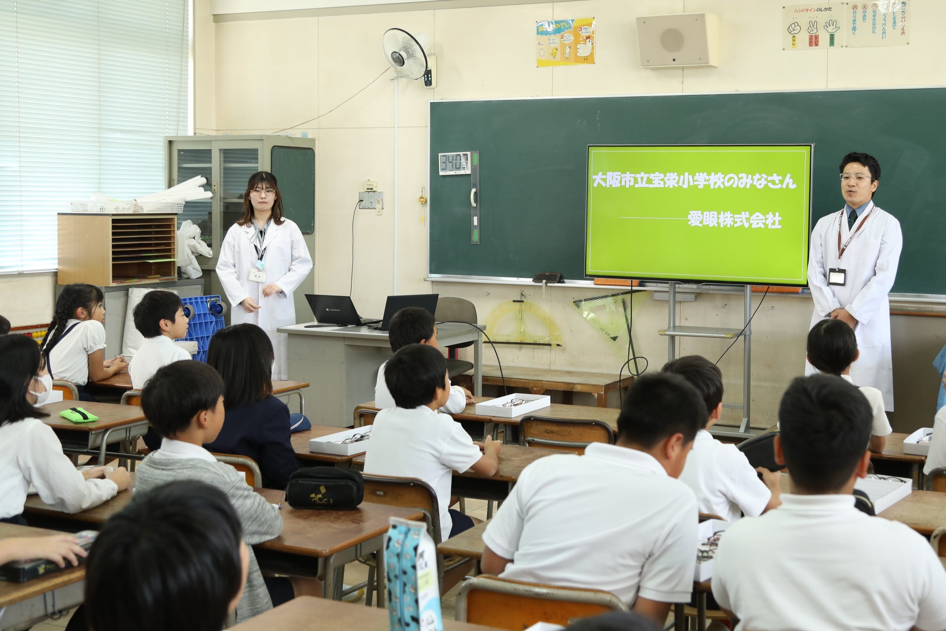 メガネ・補聴器を販売する「メガネの愛眼」( https://www.aigan.co.jp/ )を運営する愛眼株式会社(本社:大阪市天王寺区、代表取締役社長:佐々 昌俊)は、快適な視生活の提供として、次世代を担うこどもたちに眼の大切さを知ってもらうため、「見えることの大切さ」と称して第2回目となる出張授業を大阪市立宝栄小学校の小学4年生を対象に2024年5月21日(火)に行いました。