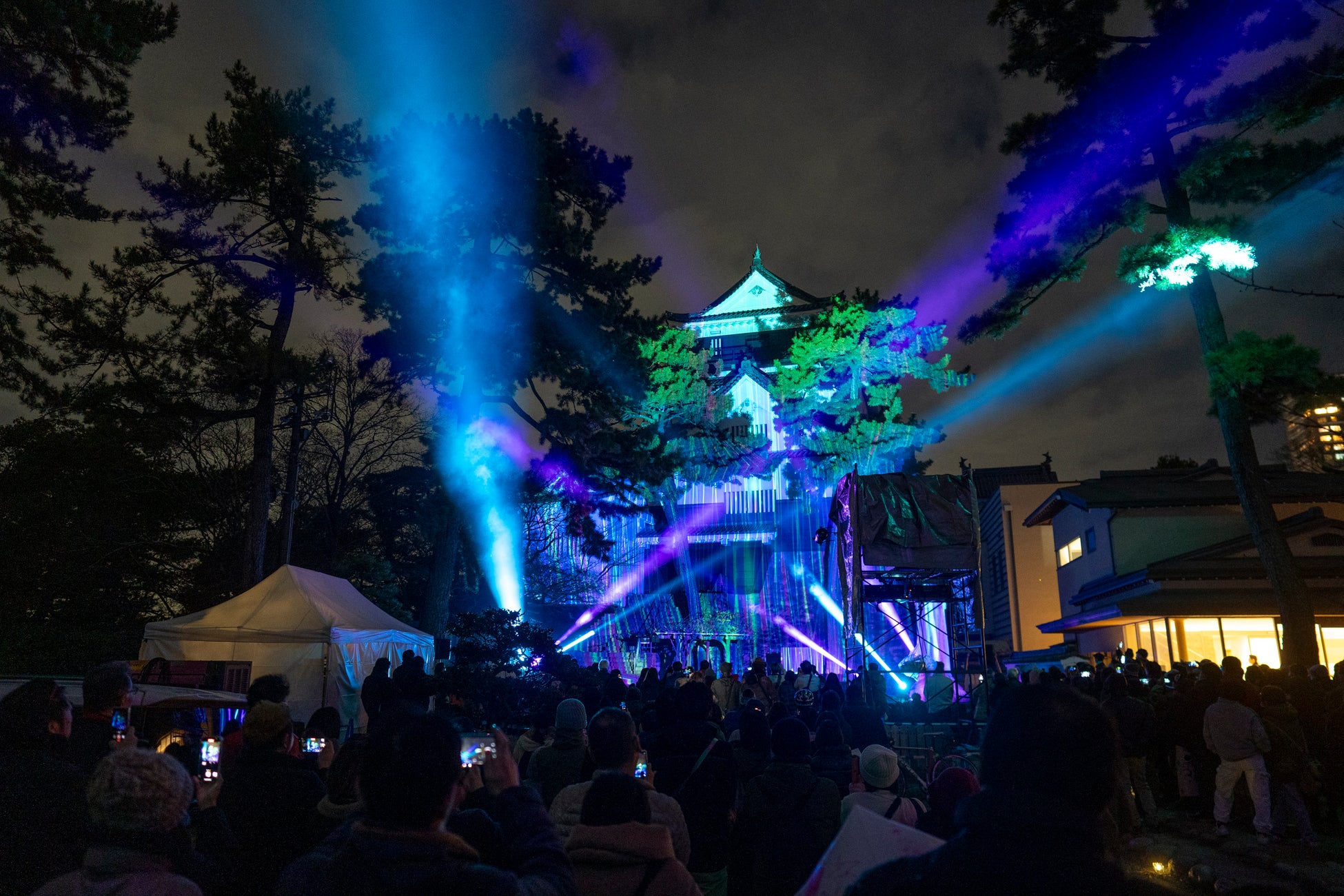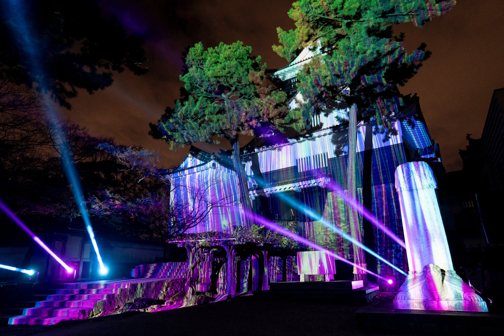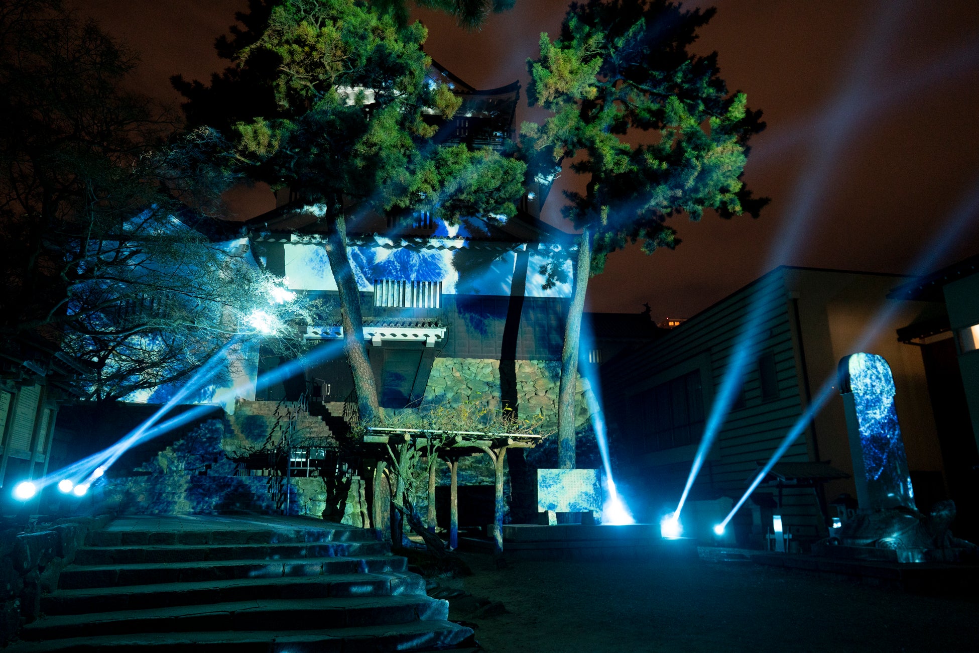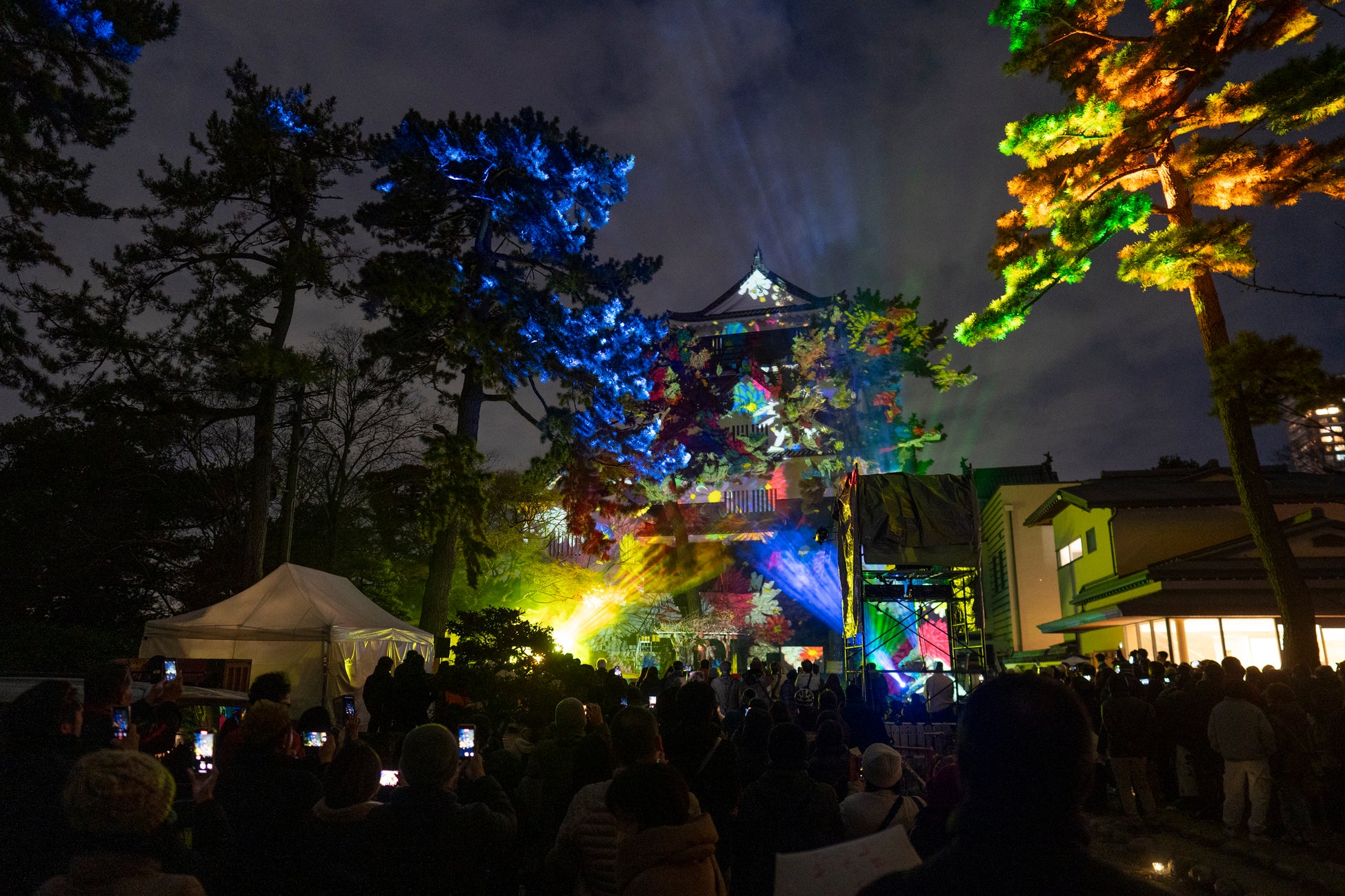 【内容】 徳川家康生誕の地で日本100名城・岡崎城天守閣に岡崎市の文化や歴史、伝統産業「三河花火」などをモチーフにしたデジタルアートコンテンツのプロジェクションマッピング映像を投影しました。