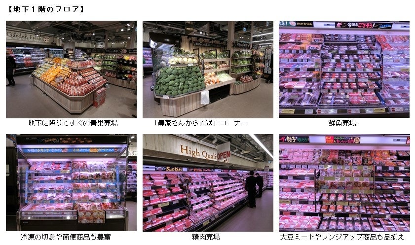 地下1階は青果・鮮魚・精肉の生鮮商品や加工食品・家庭用品等を取り揃え、ご家庭の冷蔵庫代わりになれるお店を目指します。