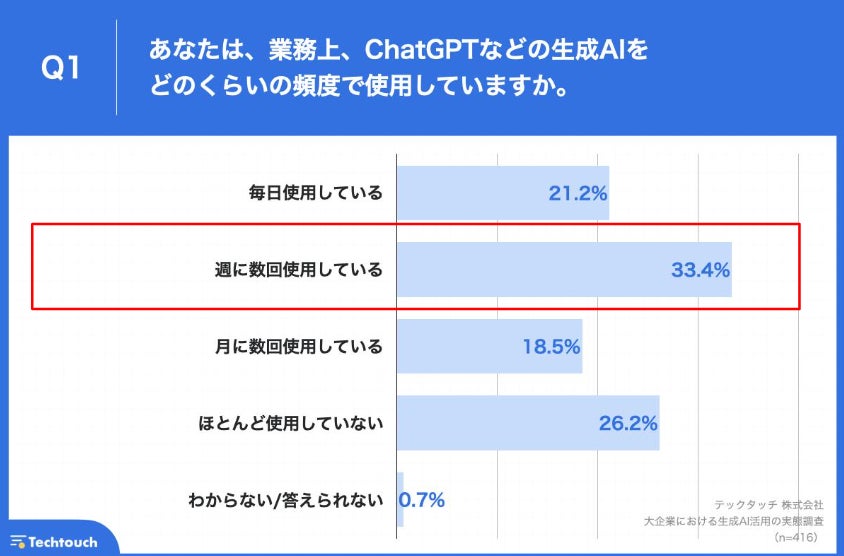 ■ChatGPTなどの生成AIの使用頻度、「週に数回使用している」が33.4%で最多