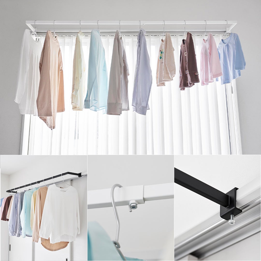 木製の鴨居・スライド扉枠・窓枠などに取り付けるだけで室内物干しスペースに。