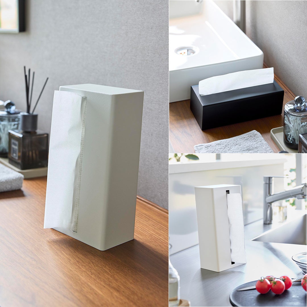 キッチンでのペーパータオル収納にもおすすめで、縦置き使用することで調理スペースが広く使えます。