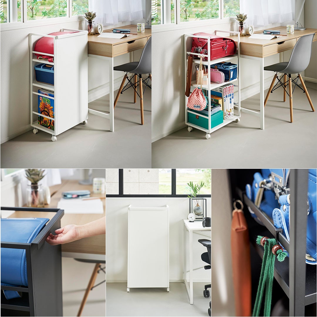 かさばる物を収納することができる目隠しトールワゴン3段。