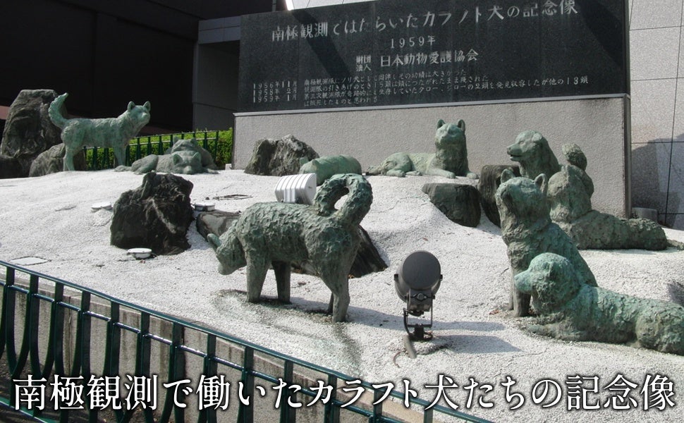 この時、重い荷物などを運ぶために、ソリを引いて南極の氷原を走り、活躍したのがカラフト犬たちだ。