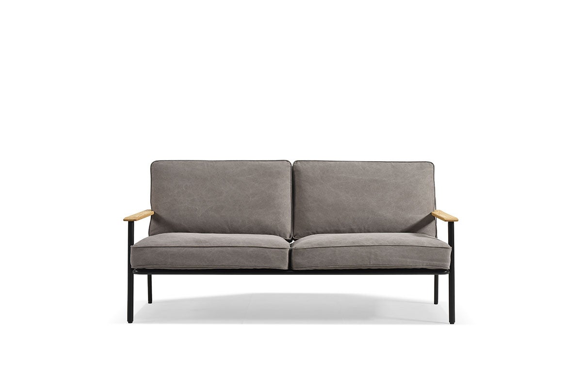 暮らしの中に「寛ぎ」と「上質さ」をもたらすダウニーソファ。広々とした座面と適度な奥行きのあるシートが特徴で、体を包み込むような快適な座り心地を実現します。現行モデルは艶のあ るベルベット生地だったのに対し、この限定モデルには丸みを帯びたフォルムと柔らかいキャンバス生地の風合い、上品なグレーの色合いが空間に優しさと落ち着きをプラスします。現行モデルの高級ベルベット生地から日常空間に馴染むキャンバスコットン生地へと変更することで、ダウニーらしさ はそのままに手に届きやすい価格のソファへと生まれ変わりました。デザインは、無骨な黒の鉄フレームに木肘がさりげないナチュラル感を演出。また、シート部分の耐久性とお手入れのしやすいキャンバス素材を採用することで、日常使いに適した実用性も兼備。長く愛用できる家具として、シンプルながらも上質なデザインを求める方におすすめです。