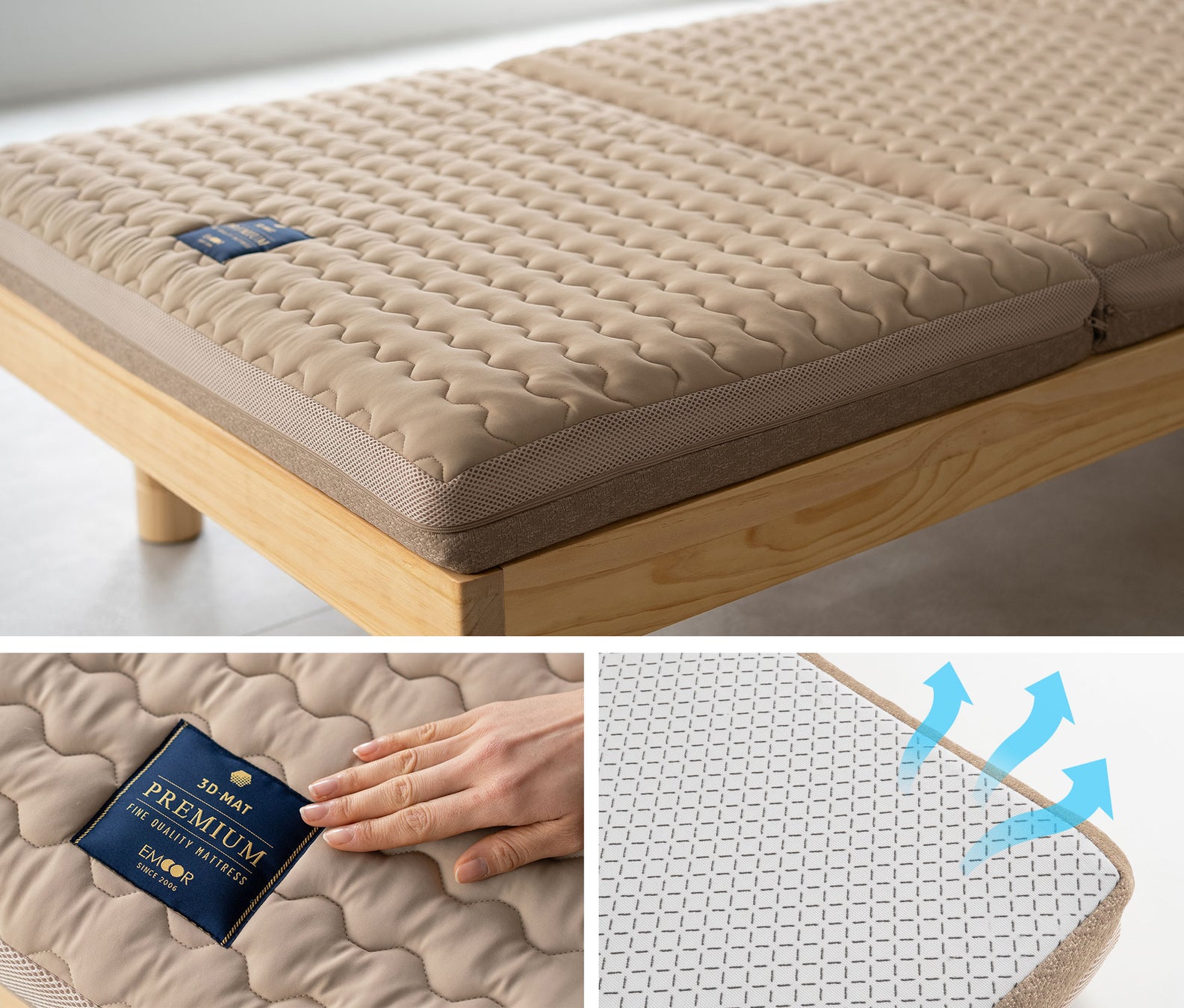 「清潔に、心地よく眠る」という新しいスタンダードを。3D-MAT プレミアムは、毎日の睡眠をより快適で安全な時間へと導きます。