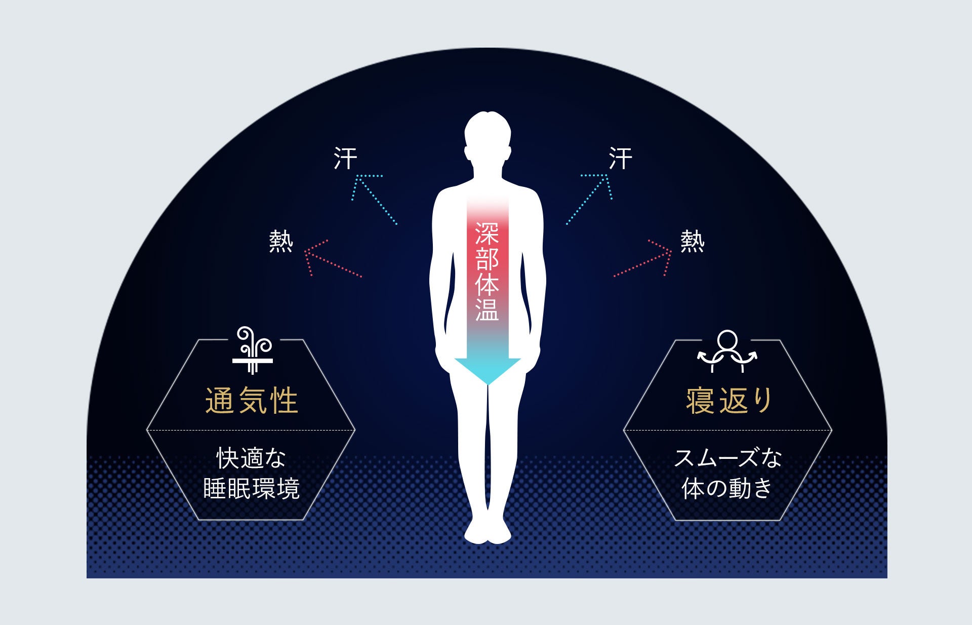 眠りの深さをサポートする 体温調節機能