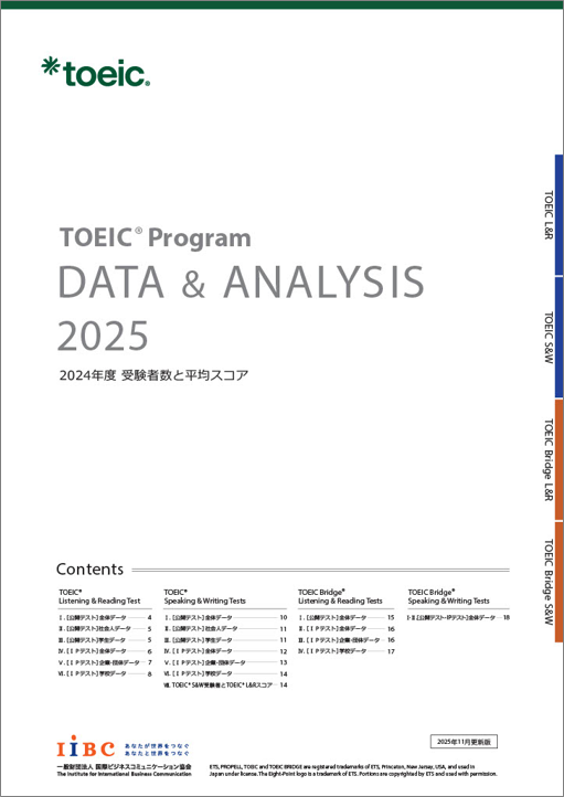 日本でTOEIC Programを実施・運営する国際ビジネスコミュニケーション協会(IIBC)(所在地:東京都中野区中野、理事長:藤沢 裕厚)は、2024年度の受験者数や平均スコアをまとめた「TOEIC Program DATA & ANALYSIS 2025」を発表します。