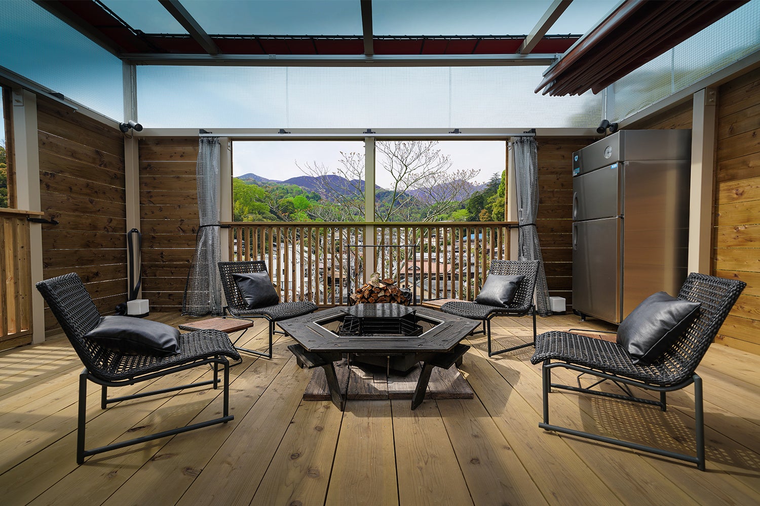 各棟専用のBBQスペースにご用意している焚き火台で、揺らめく炎の直火を使ってお肉を炙ったり、アヒージョを温めたり、手間いらずでありながらアウトドア感を楽しめるものをご用意しました。また、素泊りの場合はお好みの食材を持ち寄り、オリジナルBBQをお楽しみいただけます。ぱちぱちと音を立て揺らめく炎やじんわり伝わるぬくもり、臨場感たっぷりの雰囲気と共に神奈川・湯河原の新鮮な美味をご堪能ください。