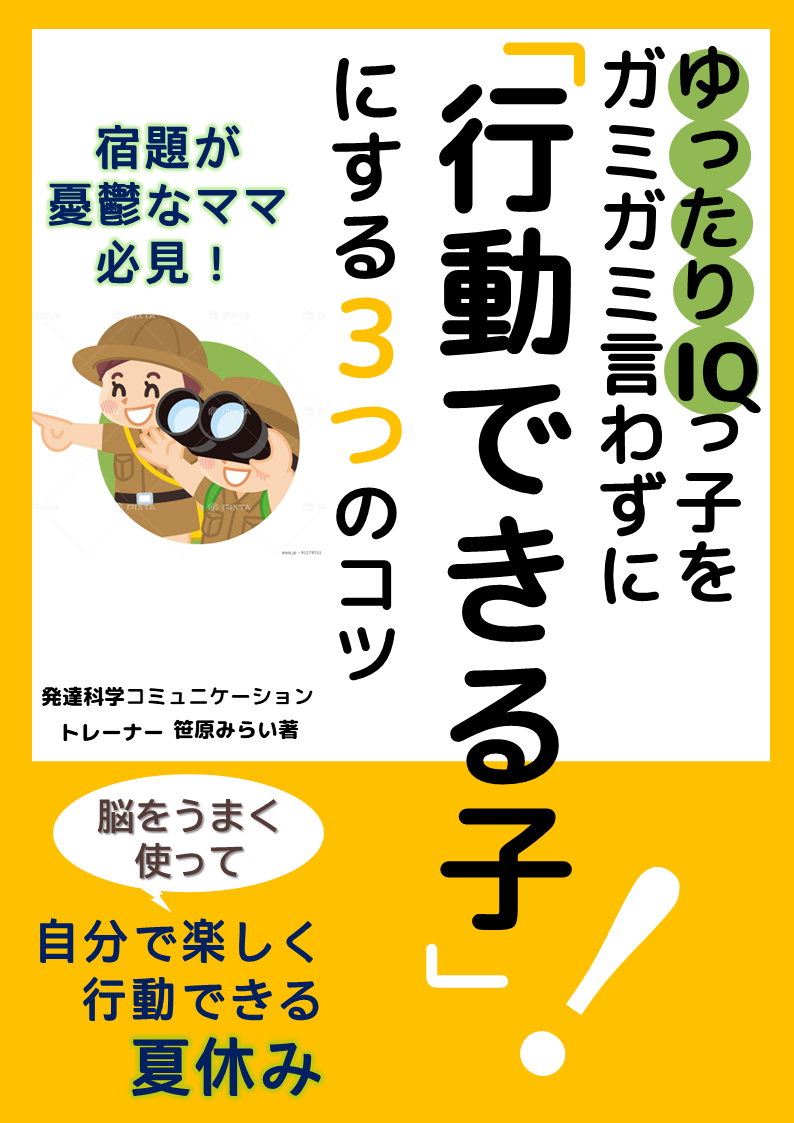 この度は、夏休み前に知ってほしい「ゆったりIQっ子をママがガミガミ言わずに行動できる子にする3つのコツ」をお伝えする電子書籍をリリースいたしました。