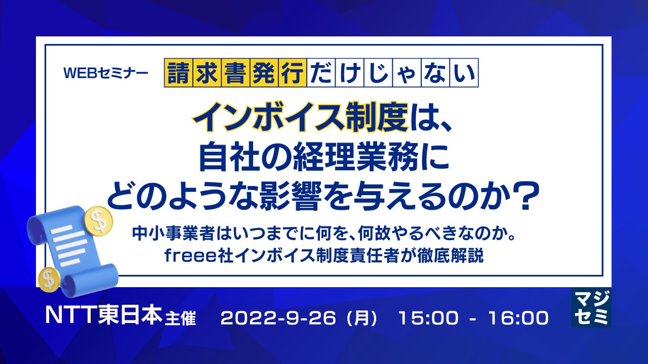 マジセミ株式会社はインボイス制度、いつまでに、何をやるべきかを解説というテーマのウェビナーを開催します。