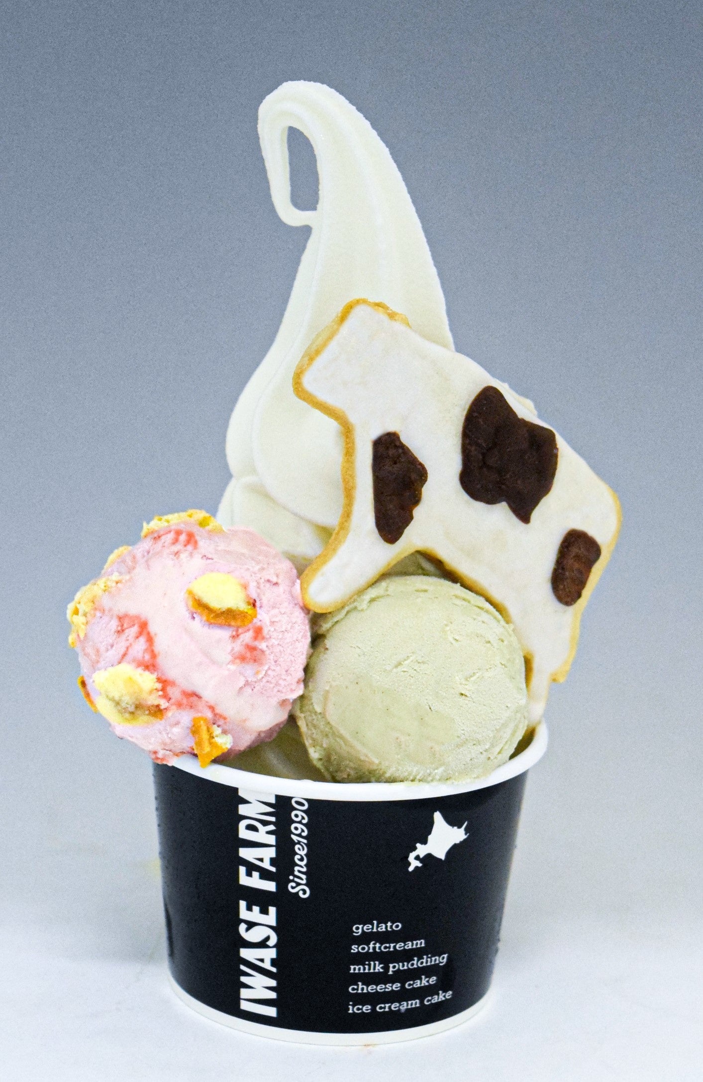 「岩瀬牧場」は、1892年(明治25年)入植の伝統ある農場。濃厚ながらもさっぱりとした味わいが特徴のソフトクリームとお好きなジェラート2種が味わえるメニューが登場します。牛型のクッキーをトッピングして提供。京王百貨店限定販売フレーバー「いちごミルクケーキ」は、当催事担当者との共同開発です。