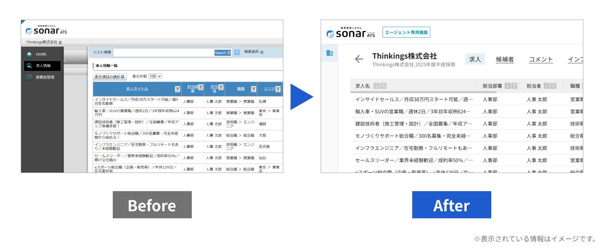 これまでのsonar ATSの「エージェント向け機能」は、画面の見え方や操作性といった点で課題の声が挙がっていました。しかし、今回のリニューアルで課題が改善され、求人票の確認、候補者の推薦といったエージェント業務がよりスムーズにできるようになると考えています。