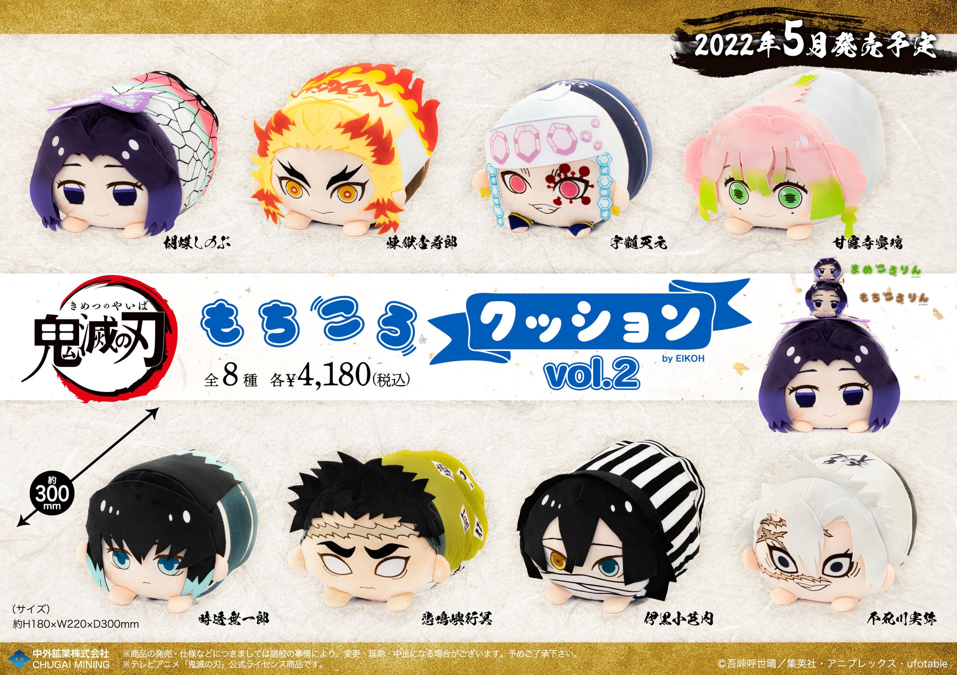 キャラクターグッズの商品企画・製作・販売を行う中外鉱業株式会社コンテンツ部は、TVアニメ『鬼滅の刃』より「もちころクッションvol.2」を販売いたします。2022年5月発売予定となります。