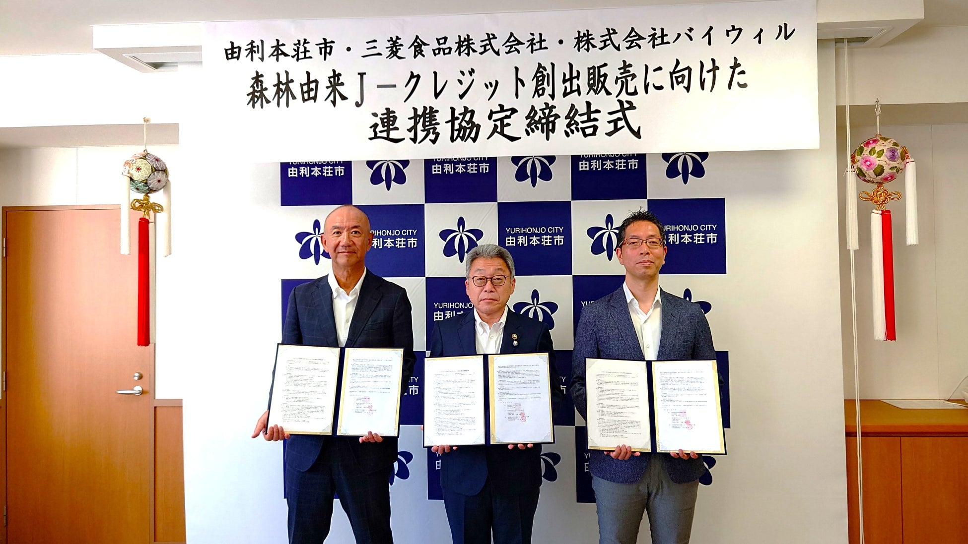 秋田県由利本荘市、バイウィル、三菱食品がJ-クレジットを活用したカーボンニュートラルに関する連携協定を締結