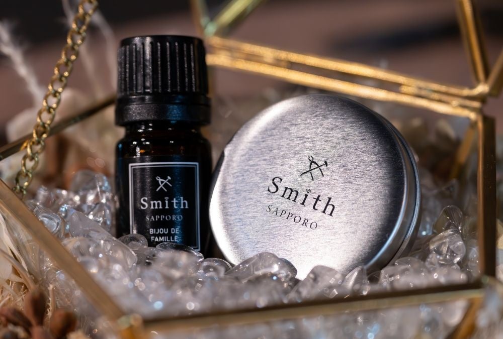 「@aroma(アットアロマ)」と共同開発した、工房Smith札幌独自のオリジナルアロマを店内に導入。ご制作いただいたお客様には、「自宅でも工房の香りを楽しめるアロマストーンセット」をプレゼント。指輪を見るたび、香りと共にあの日感動が蘇る「記憶の定着」をデザインしています。