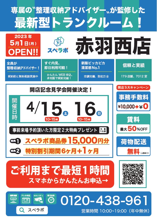 【赤羽西店/5月1日(月)オープン】見学から契約、解約まで完全非接触・非対面、お申し込みからご利用まで最短1時間!都内、大阪などにて絶賛運営中のトランクルーム【スペラボ】が赤羽駅近くに出店!