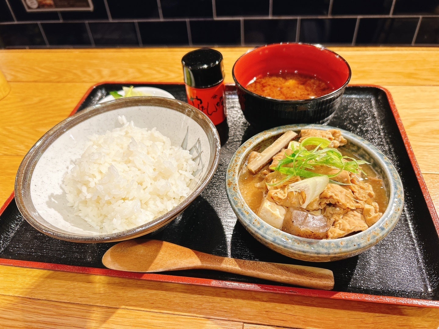 毎日限定20食。2024年11月からスタートした新メニュー。とろとろのもつが入ったアツアツの煮込みです。