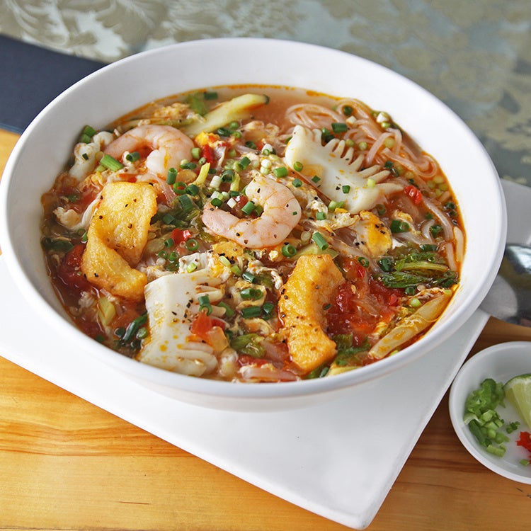 寒い冬に体を温めてくれる季節限定のフォー。トマトと卵を入れたスープは、唐辛子の辛味、トマトのさわやかな酸味、そしてエビやイカなどのシーフードの旨味が絶妙にマッチした一品です。