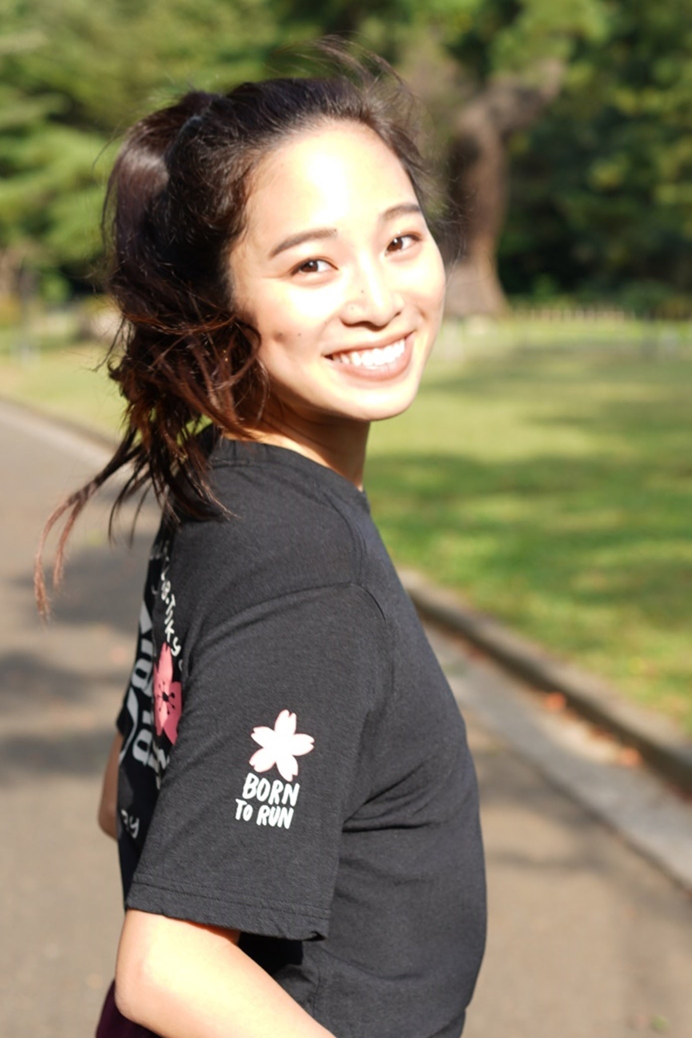 大学時代は関東大学選手権大会5,000mで3連覇、10,000mで2連覇という実績を持ち、現在はランニングイベントでのコーチングやタレント活動、また、スポーツ関連の広告モデルとして活躍中。そんな彼女の最近のお気に入りのランニングルートは、春になると桜が一面に咲き誇る砧公園。