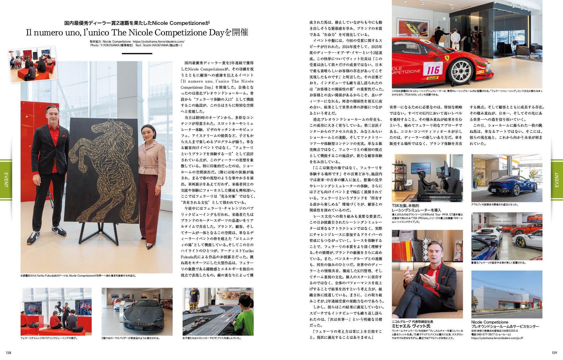 さらに2026年に35周年を迎えた「512TR」の開発秘話やスイス、サンモリッツで開催された氷上のラグジュアリーイベント、THE ICEを現地取材。クラシックフェラーリのイベントとして名高いカヴァリーノクラシックは、アブダビで開催されたミドルイースト、フロリダで開催されたパームビーチを共に紹介しています。